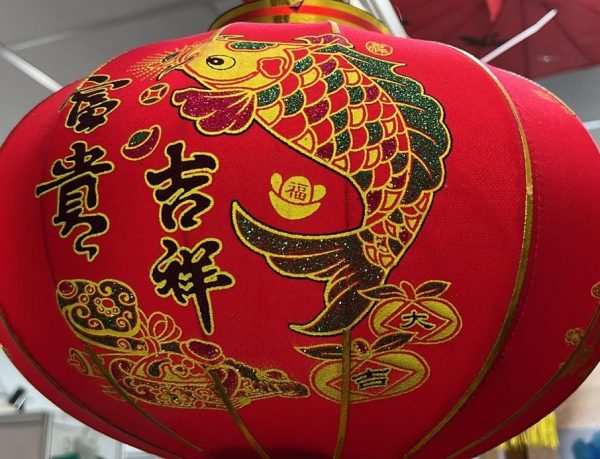 Подвесной китайский фонарик карпы с чашей изобилия.