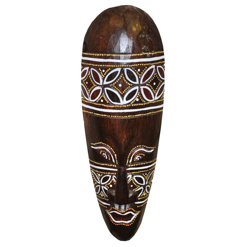 Оригинальная маска из Индонезии, украшенная искусной резьбой – это отличное дополнение интерьера в этно-стиле.