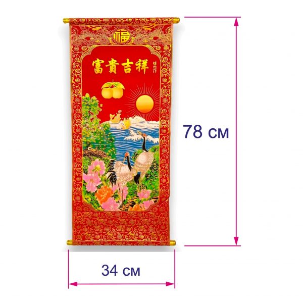 Панно в китайском стиле красного цвета из ткани с изображением аистов. Высота 78 см.