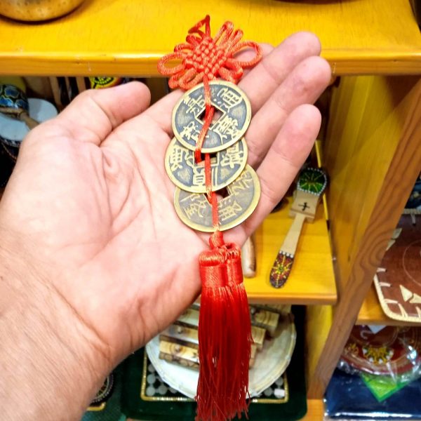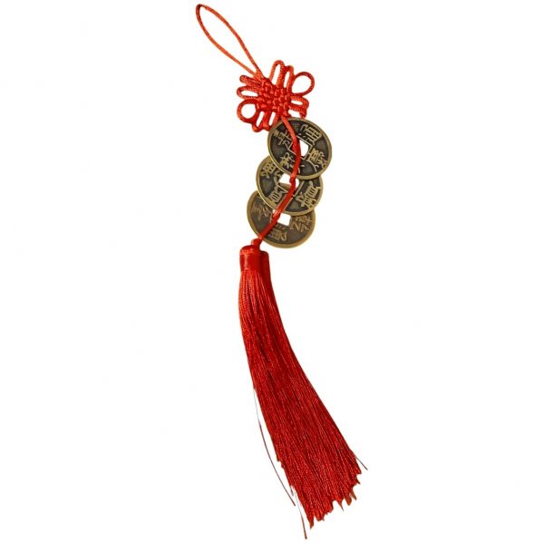 3 монеты, связанные вместе красной ниткой, означают единство человека с небом и землей. Для привлечения богатства используют 3 связанные китайские монетки, которые символизируют одновременно 3 источника: заработанное, пришедшее извне и неожиданное богатства.