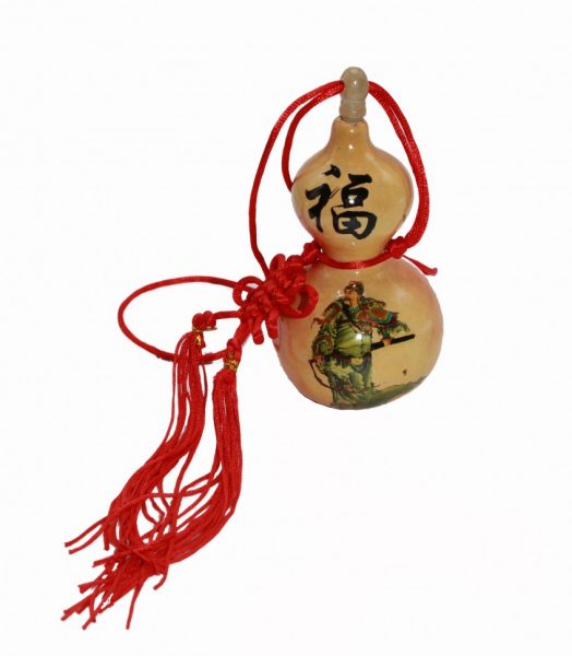 Материал — высушенная тыква, узел удачи из красной нити. Высота — 7.5 см.